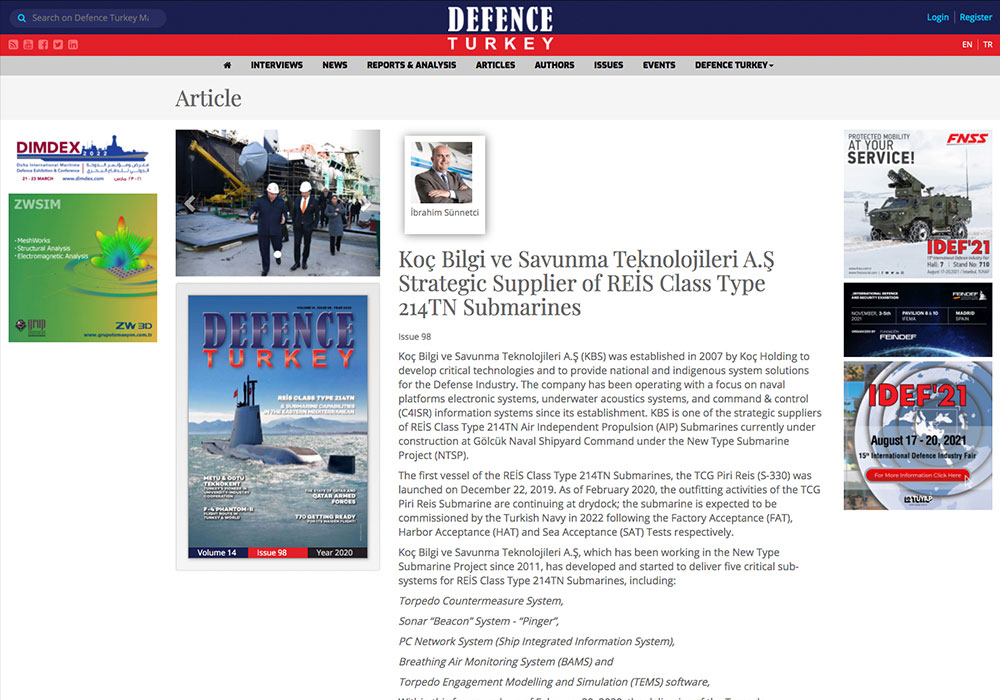 During the conference, KoçSavunma hosted many guests, notably Alper Köse, Department Head for Naval Platforms at the SSB, and a delegation from Turkish Naval Forces. KoçSavunma presented its products and provided information to more than 30 suppliers and submarine teams from the United States, Germany, Bangladesh, India, Netherlands, the United Kingdom, Norway, Poland, and Taiwan.